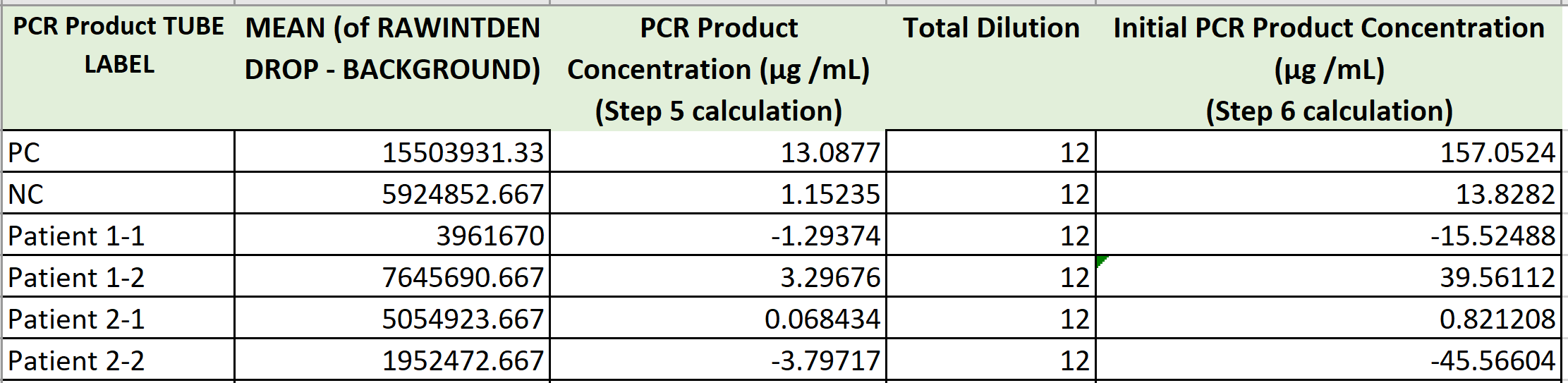 - Repeat steps 5 and 6 for the negative control, patients 1 and 2, replicates 1 and 2. Using the proper DNA/primer mix for the appropriate corresponding tubes. After this step is completed all labeled tubes should contain DNA/primer mix plus PCR mix, resulting a 100 mirco liter PRC solution in each tube.