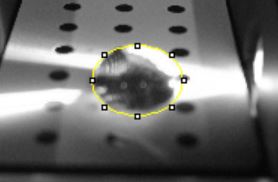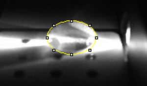 Turn on the light (switch located on the side of the box) and align the drop with the light source so that the drop is illuminated.
