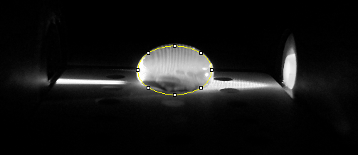 The camera phone was set up in the cradle with an angle to view the side of the drop. The fluorimeter was raised about 1 1/4 inches to accomodate for the phone height.