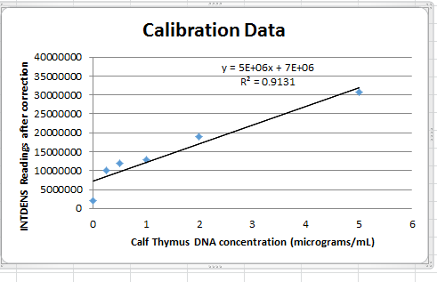 Initial Concentration of 2X Calf Thymus DNA solution (micrograms/mL)