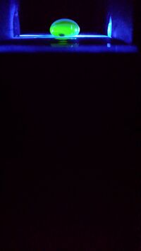 Place fluorimeter into shadow box to get a good picture of the fluorescent green