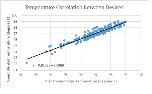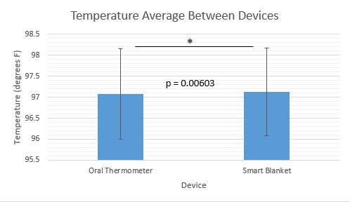 Results showed that the Smart Blanket temperature data and the oral thermometer temperature data were statistically significant.