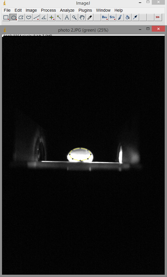 In this experiment, the iPhone 5 was set in a cradle that propped it up so that multiple photos could be taken without moving or adjusting the phone and affecting results. The fluorimeter was placed on various objects in order to raise it to the height level with the camera lens. With this set-up, the drop can be photographed directly from the side which is optimal in order to detect the fluorescence and benefit from the optical caustic effect.