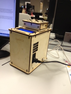 LAB 4 WRITE-UPInitial Machine TestingThis device called Open PCR, is a machine that can polymerase chain reactions to separate a DNA strand and use one strand to create a complimentary strand. This results in a new double strand DNA molecule, that is initially identical to the first DNA molecule. This is made possible by the machine heating the test tubes with primer 1, primer 2, polymerase, nucleotides, DNA, and DNA polymerase ad also subsequently cooling them. These heating and cooling procedures with the various contents in the test tubes creates an environment that allows for this DNA molecule replication. The machine is run by connecting it to a computer using a USB cable and running a program that tells the machine the specifics of the desired experiment. Like the number of cycles and temperature to be run at. The machine is also hooked on its own power supply to carry out these processes. Once the experiment is done, the machine displays the results on the blue screen on the machine.
