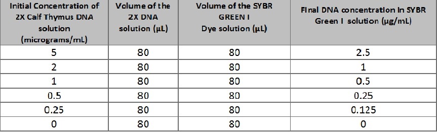 Calibration In order to calibrate the system, place the iPhone 5 in the cradle. Ensure that the camera is almost perfectly aligned with the slide with a sample drop that is exposed to the blue fluorimeter. The fluorimeter may need to be raised so that it is close to level with the camera. This can be done using small notebooks or small plastic plates that were provided in lab. Place a box over the system, making sure that no light enters when the pictures are being taken. Make sure the camera has a timer so that the box can be closed completely before the photo is taken. This process is repeated with different sample concentrations. ImageJ is the nused to analyze these images of different samples, and the RAWINTDEN values were then recorded. These values were used to make a calibration curve, of RAWINTDEN versus half-thymus DNA concentration.
