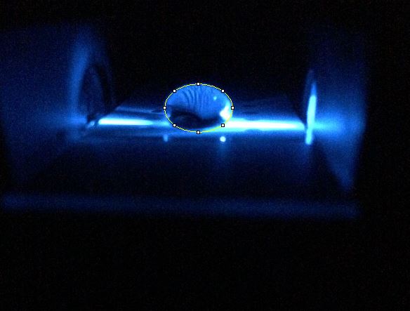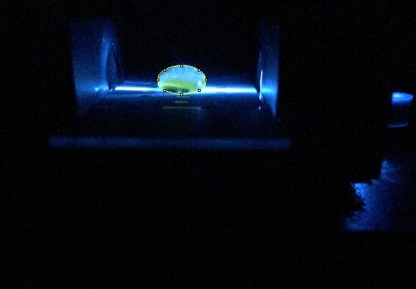 Assuming the safety and fluorimeter setup protocols are in place, begin by placing an 80 microliter sample of the SYBR green dye on the superhydrophobic side of the slide between the middle of the first two rows on the slide.     Once done, dispose of the micropipette tip used for the green dye sample and replace it.With a new micropipette tip, place an 80 microliter water blank sample on top of the green dye sample.'The drop must be aligned with the blue LED light so that the light will be focused on the fibre optic fitting on the other side of the drop. Do so.Ensure that the timer on the smartphone used is set. If so, focus the camera on the drop to improve image quality. Place the light box on the fluorimeter and start the timer once done. Close the lid to reduce the amount of light.Once the images are taken, remove the light box. With the micropipette, remove the 160 microliter sample into the waste disposal cup provided. Move the slide to its new position.Repeat steps for each sample until completion.