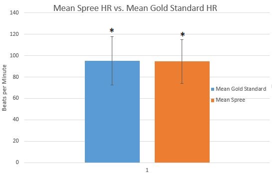 Summary/DiscussionThe overall design of the Spree headband is a decent attempt at a cutting edge device in the fitness monitoring field. However, there are many flaws in the design that need to be addressed to improve overall performance. In terms of actual performance, the Spree is not a useful device. Using T-test statistics, as well as linear analysis, there is no significant correlation between the Spree's heart rate and temperature monitoring capabilities and those of standard devices. This renders the device useless for accurate body monitoring. As for ease-of-use, there are three major issues. First,the headband does not comfortably fit around the head, as wearing the product became painful and uncomfortable after a short time. This makes the device less desirable to consumers. Second, the app that goes along with the device is not user friendly in terms of initial setup and use. There is no clear indication that the smart-phone and headband are in sync with one other. Third, the Spree app constantly drains battery life from the smart-phone, as well as takes up a lot of data space on the phone since workout history cannot be deleted. Some recommended design changes that could improve the overall quality of the Spree include making the device more aesthetically pleasing, removing the hard plastic on the side of the headband to decrease wearer discomfort, adding accurate sensors for heart rate and body temperature, and redeveloping the app to reflect more accurate measurements, as well as to measure information including distance traveled and calories burned. In general, the device needs improvements before it should be marketed to the public.