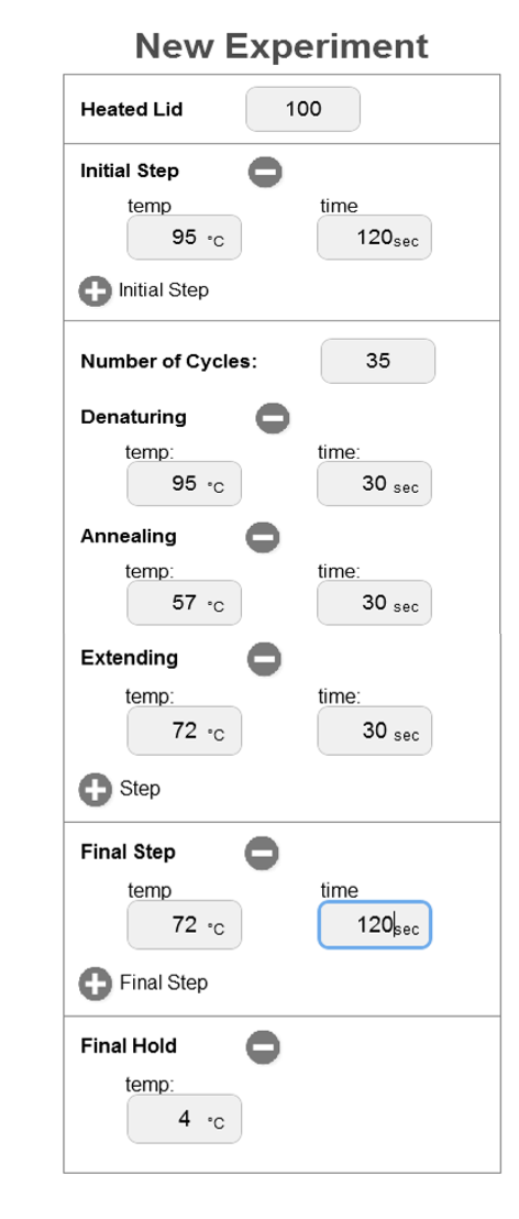 Lab Coat and disposable glovesPCR reaction mix, 8 tubes, 50 μL each: Mix contains Taq DNA polymerase, MgCl2, and dNTP’sDNA/ primer mix, 8 tubes, 50 μL each: Each mix contains a different template DNA. All tubes have the same forward primer and reverse primer.A strip of empty PCR tubesDisposable pipette tips: only use each only once.Never re-use disposable pipette tips or samples will be cross-contaminatedCup for discarded tipsMicropipettorOpenPCR machine: shared by two groups