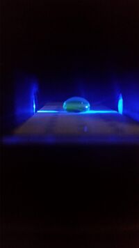 Align the drop by moving the slide so that the blue LED light goes through the middle of the drop and is not refracted to any side.