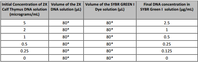 Use the pipettor to place a drop of the SYBR green I dye solution (80 microliters) in the middle of the first two rows of the slide