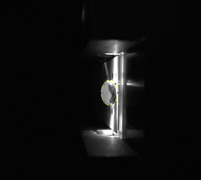Adjust the height of the fluorimeter using the plastic trays in order to take a picture of the drop sideways