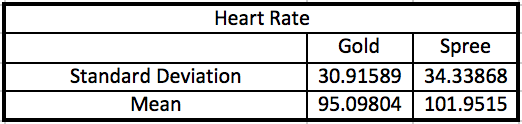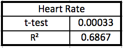 AnalysisTemperature The t-test value was less than 0.5 - therefore there was a significant difference between the two measurements of heart rate. Pearson's R indicates a small positive correlation but because it was such a small number it cannot be considered reliable or significant. This is because the Spree categorizes temperature with four different colors and comparing that to the much bigger variation of temperature found in the human body the R value was therefore very small.