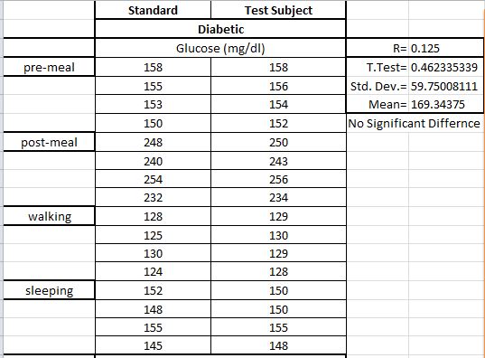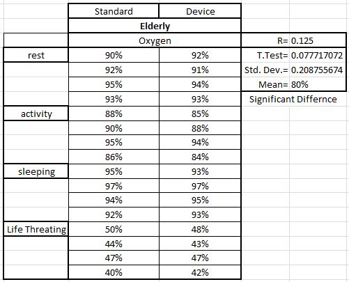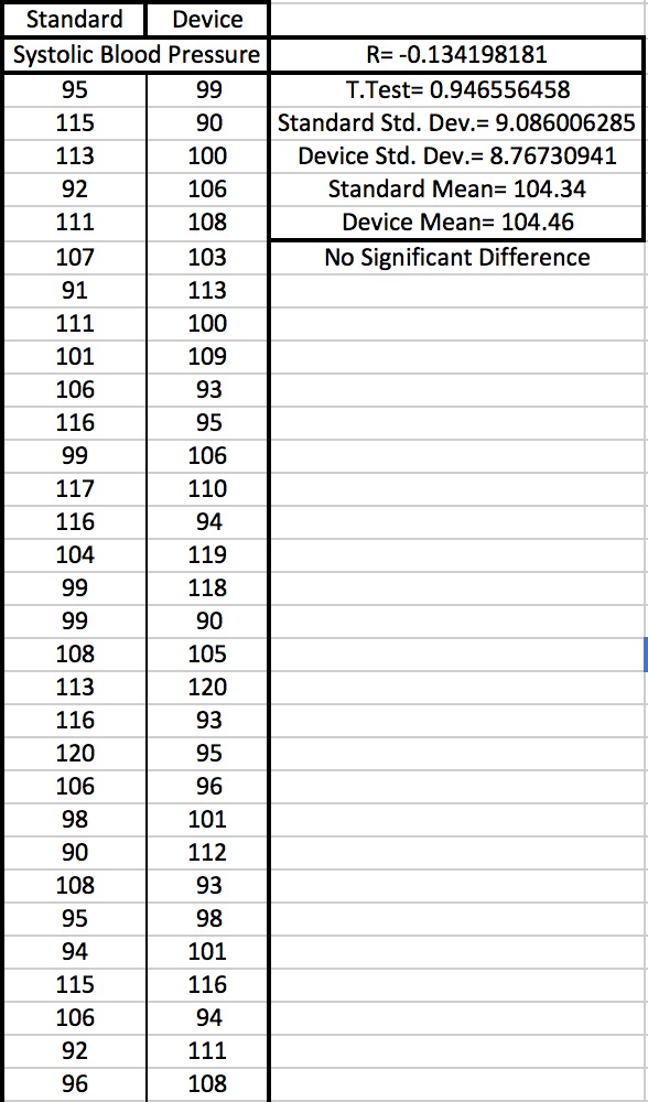 The t-test value was less than 0.5 - therefore there was a significant difference between the two measurements of heart rate. Pearson's R indicated a positive correlation but was still not close to 1 because the Spree values did not match up with the values given by the oximeter.