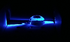 [ Place 80 µL of the sample calibration solution on top of the drop from step 3, adjust the slide so that the blue light is going through the middle of the now larger drop.