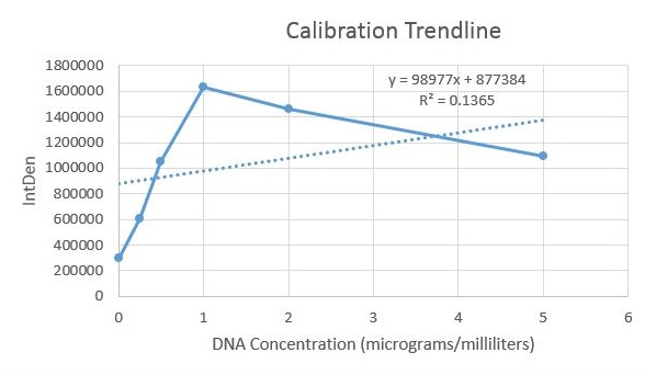 Note: Our camera was not sensitive enough to capture the high concentrations of SYBR green. Here is another graph with a more accurate trend line.