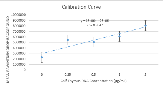 | Final DNA concentration in SYBR Green I soluction (µg/mL | RAWINTDEN drop - background | ' | ' | Standard Deviation |