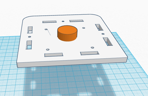 Computer-Aided DesignTinkerCAD Our Design This is the top of the open PCR machine. In our design the area where the PCR tubes are held was increased by two columns so the darker box is the new region that is taken up by the PCR samples. This was done because open PCR takes a long time and it would be better if you could get more done in the same amount of time. Also not shown in the picture is a change to the LED display. Normally it only shows the temperature and the estimated time remaining, but in our device it shows both of those and the step it is on. This was simply a minor quality of life change. This is the top of the box which is on top of the open PCR machine. In our design the old knob was taken off and replaced with one that is easier to adjust and is more accurate. This was done because the old knob was bulky and hard to adjust and this new one makes up for it. Also not shown in the picture is that the box is no longer snap on and off, it is magnetic. This was done because it was hard to open and even harder to properly close, with a magnet it would be much easier to do both of these tasks.