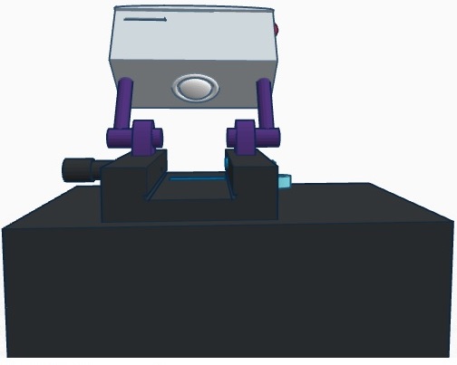 Our design differs from the original fluorometer design in that it incorporates a self-contained camera. The camera mounts on to arms that mount on to either side of the slide platform. The arms are then able to be rotate between two different positions. The camera mount can be in the upward position so that it is out of the way for sample droplets to be placed onto the slide. After the slide is in position, it is rotated to the downward position where the camera is at an ideal angle for capturing images for analysis. The camera also houses a slot for an SD card. The images taken by the camera are automatically saved onto the SD card, which can then be easily removed and inserted into a computer for image analysis.