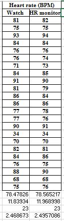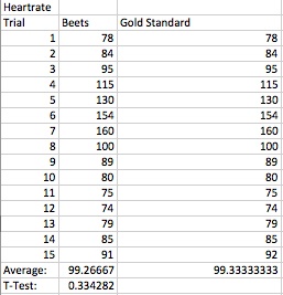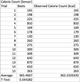 As shown in the series of data tables comparing values obtained from the Beets device and the FitKit monitoring sensor, the T-test P values that were garnered from comparing the averages of the Beets/FitKit hardware with the observed quantities were consistently far below the necessary threshold to determine the relationship’s statistical significance (p ≤ 0.05): every relationship, according to the P values obtained, is statistically significant. For example, the observed p value for the relationship between the temperature measurements taken from the Beets and that taken from the Gold Standard thermometer was 1.80215692075246 * 10-17.