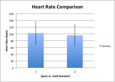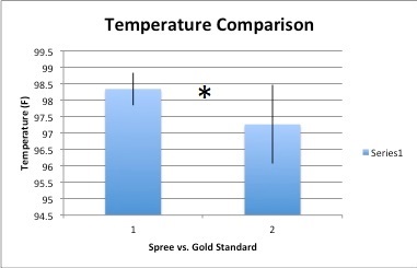 According to the data collected, only the heart rate had a strong correlation with the gold standard, while body temperature did not. These results aren't very good for the Spree company because their product is based on these two product abilities as selling points. There were a few problems with the spree that fall in the appearance and performance categories. The head band is very unappealing to the public, and the performance doesn't make up for it. Although the technology is handy, especially since the data is transferred to your smart phone, it was basically useless in recording body temperature. The temperature "levels" are very primitive, and accurate temperatures cannot be recorded. This is because it is very hard to measure body temperature on the forehead, or at least the technology is not yet there. It may be possible to change the technology in order to be more appealing and be more accurate. For example, if the band was made into a bracelet like other current technology, it would be much more appealing to consumers. Also, if the company could develop a small, reusable patch that could be placed under the arm pit, the Spree would be able to get much more accurate temperature readings.