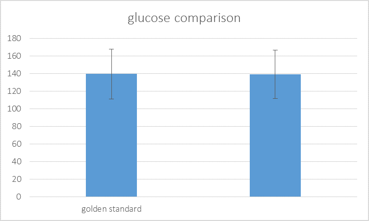 Device DesignInferential Statistics{ Blood Glucose Levels Blood Glucose Levels PEOPLE TESTED Gold Standard (Glucometer) Sole Tech (Sweat Glucose) Person 1 176 173 Person 2 106 108 Person 3 160 159 Person 4 93 92 Person 5 172 170 Person 6 104 105 Person 7 95 96 Person 8 153 153 Person 9 108 110 Person 10 178 174 Person 11 139 138 Person 12 150 153 Person 13 101 100 Person 14 107 109 Person 15 161 159 Person 16 142 140 Person 17 139 138 Person 18 116 118 Person 19 160 161 Person 20 165 163 Person 21 144 143 Person 22 160 162 Person 23 119 120 Person 24 174 175 Person 25 166 163 } {1.002 - 1.030 indicates Hydration Level 2% Body Weight Loss is Dehydration PEOPLE TESTED Gold Standard (Urinalysis Specific Gravity) Sole Tech (Body Weight % Loss) Person 1 1.015 1 Person 2 1.004 0.1 Person 3 1.011 0.8 Person 4 1.012 0.8 Person 5 1.007 0.3 Person 6 1.003 0 Person 7 1.011 0.8 Person 8 1.017 1.1 Person 9 1.006 0.2 Person 10 1.019 0.13 Person 11 1.005 0.2 Person 12 1.012 0.8 Person 13 1.004 0.1 Person 14 1.021 0.14 Person 15 1.018 0.13 Person 16 1.003 0