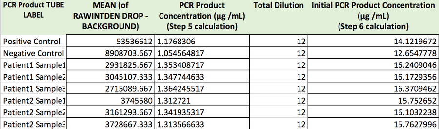 PCR Results: PCR concentrations solved