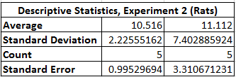 We performed a t-test on the data from Experiment 2, and found that there was no apparent statistical significance. The p-value of 0.8674 is much larger than the 0.05 required to show statistical significance.