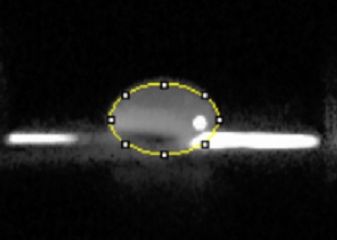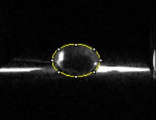 The camera used in this lab was from a HTC Desire 626 smartphone. Prior to placing the phone in the cradle we adjusted a few settings on the camera. We inactivated the flash, set ISO to 800, set white balance to auto, set exposure and saturation to the highest settings, set contrast to the lowest setting and finally we set the timer to 5 seconds. The phone was placed in the cradle so that it was perpendicular to the fluorimeter. Plastic trays were used to raise the fluorimeter in order to take a "sideways" picture of the drop. The camera was placed as close to the fluorimeter as possible without the image coming out of focus, this distance was approximately 7 cm.