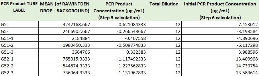 PCR Results: PCR concentrations solved