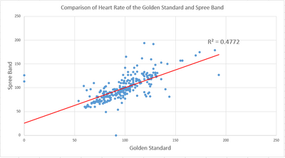 The results of the descriptive statistical tests were not much better. Although we observe similar means between the Spree Band measurements and the measurements from the gold standard devices, the standard deviations for the heart rate measurements are quite large. The standard deviation for temperature is much smaller because body temperature should not fluctuate too much. Even so, looking at the Pearson’s r value, we see that the result still points to a statistical difference because the values were too small (0.69 for heart rate and 0.19 for temperature).