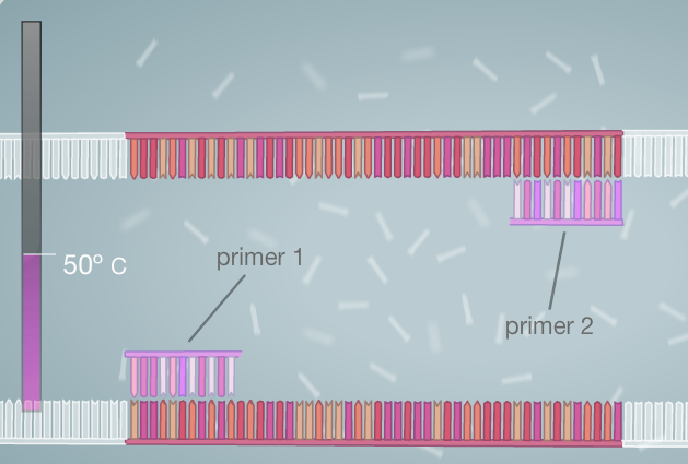 Research and DevelopmentPCR - The Underlying Technology The temperature is raised to 95 degrees in order to break the double helix of the DNA. The temperature is cooled to allow the primers to bind to the DNA. The temperature is raised to allow the Taq DNA Polymerase to begin transcription and replicate the target DNA. (http://learn.genetics.utah.edu/content/labs/pcr/)