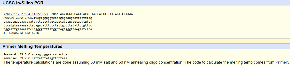The non-disease forward and reverse primers were found by analyzing the gene with the SNP. The mutated nucleotide (SNP) was found, and the 20 nucleotides leading up to this became the forward primer. The reverse primer was similarly found using the bottom strand of DNA, including 20 nucleotides from a position 200 bases away from the SNP. The diseased forward primer is identical to the non-disease primer, except the final A nucleotide is a C nucleotide, indicating the mutation. The disease reverse primer is identical to the non-disease reverse primer. These primers were tested and found to be correct through a given human genome database.