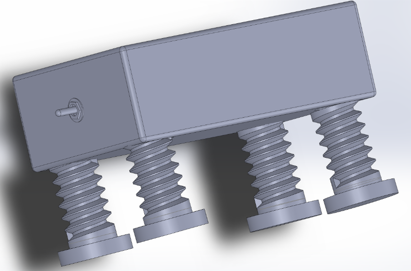 SolidWorks was used for this assignment due to the familiarity we have with the software. It is an advanced 3D modeling software that allows more in depth customization and design for our product. Using SolidWorks to design the adjustable stand was difficult to get the detail we desired in our stand design. The hardest part was to design the curved surface of the legs, and to match the dimensions from one pieces to the next. However, through the process new techniques such as the thread function were utilized to design the final product as accurately as possible. The piece was split into two parts between two team members. One member built the box with the on/off switch, and the other member built the legs that were added to the original design. Then, through research and teamwork, we were able to find solutions to our design problems within SolidWorks.