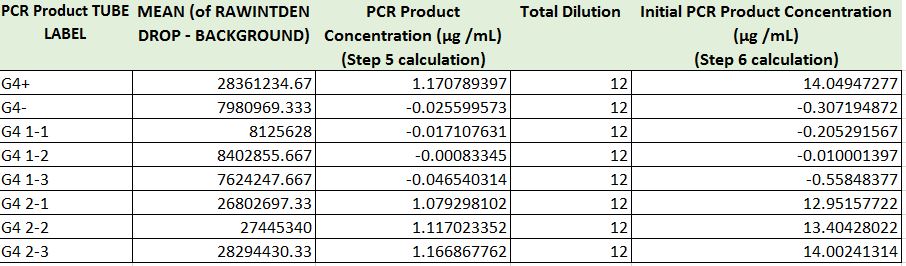 Images of Our PCR Negative and Positive Controls PCR Results: PCR concentrations solved
