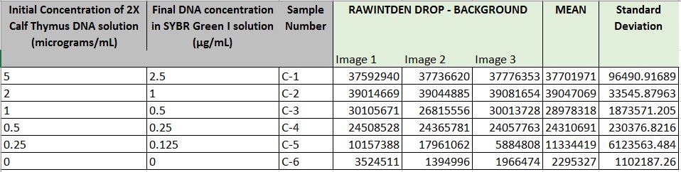 Error creating thumbnail: File missing From a qualitative perspective, the pictures of patient 67309's pcr products seemed to contain significantly visible amounts of green coloration. Green is clearly visible when the blue light of the fluorimeter shines through the droplets of this patient's pcr product mixed with the SYBR Green I. The quantitative results seem to support the qualitative observations because the 3 replicates of this patient's DNA had concentrations of approximately 12.9, 13.4, and 14 ug/mL. These values of initial pcr product concentration are very close to the positive control's concentration of about 14 ug/mL. There seems to be a significant amount of pcr product in patient 67309's pcr tubes relative to the positive and negative controls.