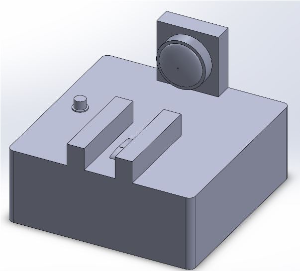 A possible source of device error is the measurement of the concentration of green in droplet pictures with ImageJ. Every image had two or three extremely bright spots that were simply a result of the limitations of the phone camera, these bright spots greatly increased the measured values of concentration and could have thrown off the calibration curve. Even though the most prominent bright spots could be avoided, there were still some smaller bright spots central to the image which could have contributed to inaccurate measurements of concentration. Another possible source of error lies in completely transferring the contents of each of the tubes onto the slides during the drop fluorimeter process. Although the micropipettes were set to the correct volumes, sometimes an air bubble would occur in the tip and trap a bit of liquid. This would have affected concentration results if not the exact amount of Syber Green or the calibration liquids were put on the slides. A third source of error is possible contamination during the PCR process. A few groups did not have unanimous individual PCR results, instead they were split between testing positive or negative. This led to one group having an inconclusive final result. An inconclusive final result, or final results that were affected by contamination during PCR would give inaccurate statistics for the values used in calculating the Bayes value. The reliability of a test would be diminished if a group that should have gotten a positive final conclusion had an issue with contamination and instead had a final conclusion that was inconclusive. Intro to Computer-Aided Design3D Modeling For the computer aided design portion, Solidworks was used. This was done because we wanted to gain more experience using complex 3D modeling software, and because we already have some prior experience with it. The web based tinker cad is very basic, and difficult to make very exact parts and shapes. Because it runs on a “drag and drop” set up, custom sketches are very difficult to create, as opposed to solidworks, which is a sketch based system. For these reasons, we decided it would most logical to design the prototype in solidworks. Actually creating our design in a more advanced 3D modeling software like SolidWorks did become challenging at certain points, such as making the roller in the center. A bit of trial and error was involved in creating rounded objects such that they would attach to a particular plane. The 3D model is meant to display a sliding apparatus, but when implemented it made the model a bit too messy, so we decided to just implicitly invoke the appearance of a slider by having the camera on the same plane as the glass slide but far away. Our Design