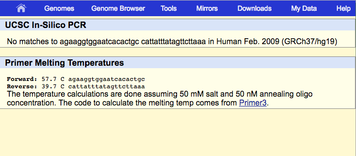 The non-diseased primer has a result of 220 bp which means that there are 220 bases in between the pair. The capital letters show the sequence matching the database and the lowercase letters show where it does not. The reason that the diseased primer has no matches is because it did not exist in this particular gene sequence.