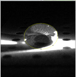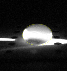 A 160 μL drop of water was pipetted into the center of the first two rows of the slide, the smartphone camera was set up at a right angle to the slide, and three images of the water drop were taken. The distance between the cell phone and the droplet was recorded for future trials.