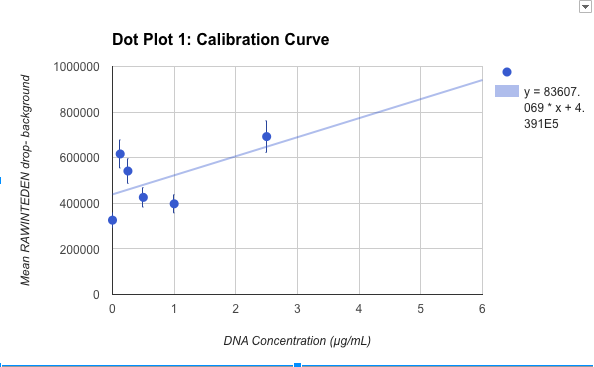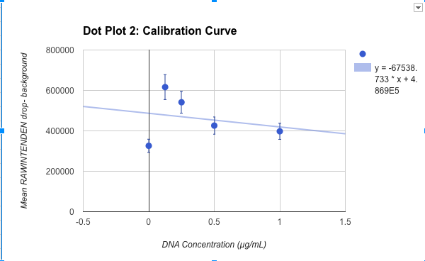 Patient 64572 : Qualitatively, patient two's images showed a nicely sized green dot in the center of each drop. Quantitatively, the results showed that on average the initial concentration was 63.32 μg/mL.
