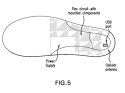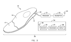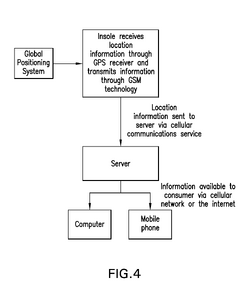 Insoles for tracking, data transfer systems and methods involving the insoles, and methods of manufacture Publication number: US 20110260857 A1 Assignee: Kristan Lisa Hamill File Date: April 22, 2010 Summary: An insole that has multiple layers that include a insole material, a flexible circuit layer, data transmitter, and data receiver. The data is transmitted wirelessly, which allows the tracking of the user. The product can be used to track both children and adults, especially senior citizens.