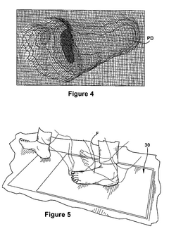 Method for design and manufacture of insoles Publication number: US7206718 B2 Assignee: Diapedic, L.L.C., Peter R. Cavanagh File Date: September 21, 2005 Summary: This is the methodology of producing the optimal insoles to help relieve pressure for individual patients. The method uses three dimensional imaging of a foot and the distribution of plantar pressure to identify the problem areas of the foot.