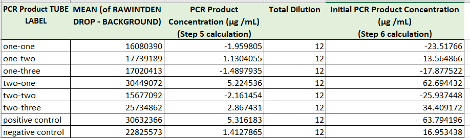 PCR Results: PCR concentrations solved