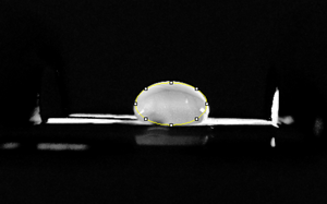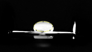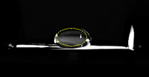 The camera of a Samsung 8 smartphone was set up with an inactive flash, iso set to 800 or higher, white balance set to auto, exposure and saturation set to the highest setting, and contrast set to the lowest setting. Once the camera was set up, a three second timer was turned on, and the phone was placed on the cradle at a right angle from the slide. The height of the fluorimeter and slide was then adjusted so that the phone camera could take a picture of the drop sideways edge-on. The distance between the phone and the fluorimeter was measured and recorded (it had to be at least four centimeters away).