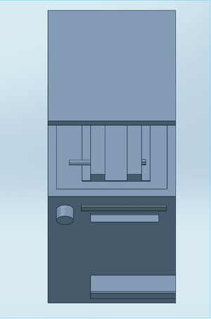 Our device was designed to solve one systematic problem with the original fluorimeter apparatus. During the experiment a smartphone was used to capture images of the droplets.  Since the droplets had to be in a dark environment, a light box was used to cover the fluorimeter and the camera, meaning  that each time a picture was taken the camera had to have a timer set and the box had to be repositioned over the system before that timer went off.  This process was extremely tedious--it had to be done three times for each droplet. Indeed, since the apparatus was repositioned before each image, it likely affected the accuracy of the final results. To resolve this hassle, our design implements a camera holder on the outside of the box. Capable of adjusting the height with a basic crank mechanism using a knob, a simple ledge positions the phone camera precisely to capture images at the right distance from the droplet. The box has an open hole just for the phone camera. A combination of the phone and a piece of fabric hanging over it (attached via velcro strip) cover the rest of the hole, blocking light from entering the box. In addition, the box is designed with a rubber bottom to keep it from slipping when the phone is adjusted. Unlike the original fluorimeter, the top of our design is removable instead of the front. Made to attach magnetically, a removable top allows the drops to be easily added to the glass plate without having to move/adjust the entire apparatus.  With this new design the whole system is connected. With the exception of the actual PCR droplets, no aspect of the design requires repositioning.  Since the phone is placed in a specified slot, there is no need to measure and remeasure the distance between the phone and the slide. In other words, our design improves upon the original by keeping the experimental environment fixed abd removing the variability between trials.
