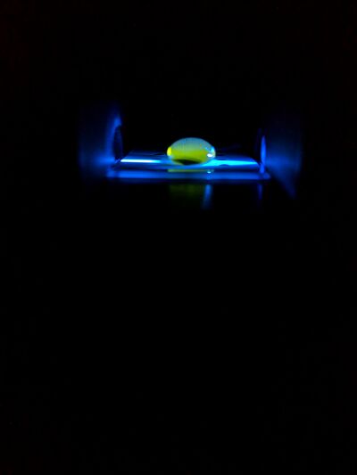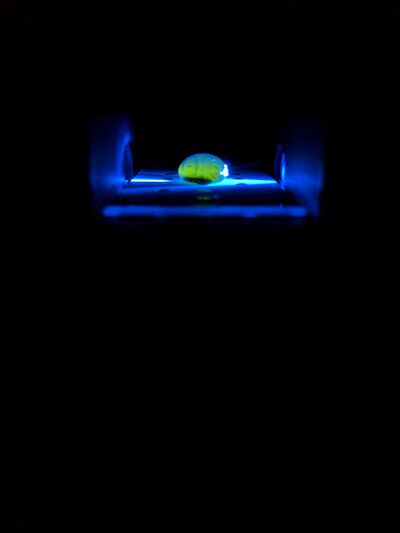 Record the distance between your smart phone cradle and drop using the ruler provided in lab. Be careful not to move the camera, cradle, or fluorimeter very much. The light collected will change slightly if there is a significant difference from one image to the next in these distances.