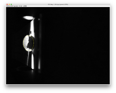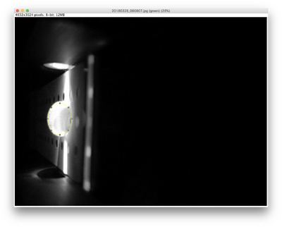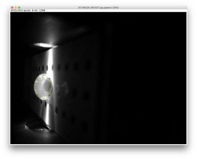Align the drop by moving the provided slide so that the blue LED light is focused by the drop to the middle of the black fiber optic fitting