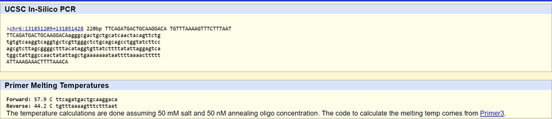 Test results for disease primers: These results match what was expected. The disease primers yielded no results because the website used a non-disease human genome sequence. | ||||||||||||||||||||||||||||||||