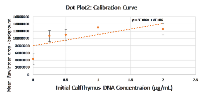 Patient 94130 : For Patient 1 (94130), the images were all very dark both in color and in ImageJ. It was clear that the reaction between SYBER green and the DNA was very minimal because the light passing through the droplet did little to change the appearance of the droplet. In this way, the images for this patient looked similar to that of the negative control. This makes sense because the calculated concentrations were -7.56, -10.82, and -6.84 micrograms/milliliter for the three samples of Patient 1 DNA. These numbers line up closer to that of the negative sample