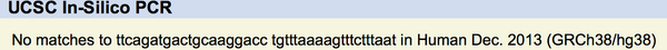 Our non-disease forward primer was 5'-TTCAGATGACTGCAAGGACA and our non-disease reverse primer was 5'-TGTTTAAAAGTTTCTTTAAT. Our disease forward primer was 5'-TTCAGATGACTGCAAGGACC and the disease reverse primer was 5'-TGTTTAAAAGTTTCTTTAAT. After conducting our primer test, we found that our non-disease forward primer and non-disease reverse primer has a match in the human genome. However, there was no match to our disease forward primer and disease reverse primer.