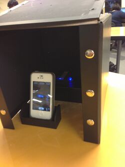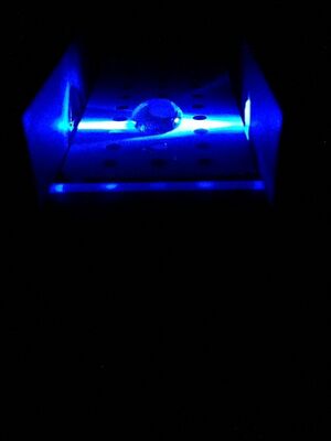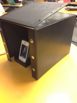 Flourimeter Measurements Procedures for Fluorimeter Assembly: 1.)Unbutton the file box and flip over like shown below. 2.)Place glass slide down on fluorimeter. 3.)Place a drop of the sample on the slide then another close by to form one large drop like show below. 4.)Turn on light so that it may pass through the drop into the opposite hole. 5.)Place smart phone in stand. 6.)Move the system into the file box. 7.)Take picture and record image. (*close the lid for more accurate results)